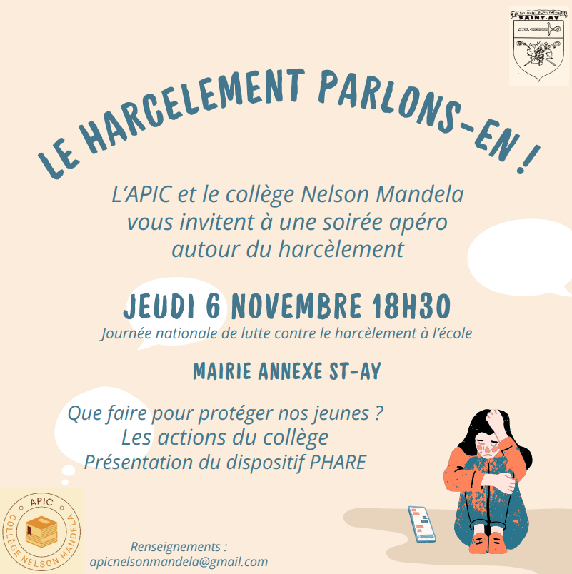 L’APIC et le collège Nelson Mandela vous invitent à une soirée autour du harcèlement : Le harcèlement, parlons-en !